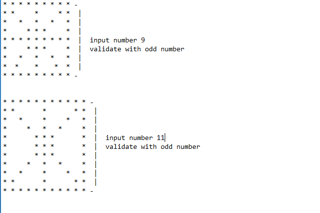 pattern star java asterisks ascii number validate odd must